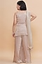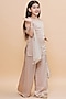 Featuring a beige kurta for girls in tissue base with mirror work. It is paired with palazzo pants and a dupatta. Accessorize it with matching hair accessories and sandals for a stylish ensemble, ideal for any festive occasion.
