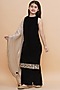 Featuring a black kurta for girls in velvet base with mirror work. It is paired with pants and a tissue dupatta. Accessorize it with matching hair accessories and sandals for a stylish ensemble, ideal for any festive occasion.