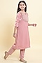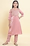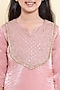 Pink Tissue Handwork Kurta Set For Girls