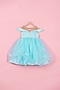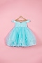 Featuring a blue gown for girls in silk and organza base with draped sleeves. Style this designer gown with sandals and cute hair accessories for a birthday party or a special event.