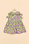 Featuring a green and lilac dress for girls in cotton base with lace work. Accentuate it with cute hair clips or a playful headband and comfortable ballerina flats for a charming ensemble, ideal for play dates or casual outings.