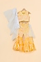 Featuring a mango yellow top for girls in embroidered net base. It is paired with sharara pants having an attached dupatta. Style it with sandals and hair accessories for a festive occasion or wedding ceremony.