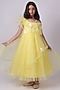 Yellow Butterfly Net Pearl Embroidered One-Shoulder Dress For Girls