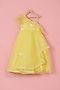 Featuring a yellow one-shoulder dress for girls in butterfly net base with pearl embroidery. Accessorize it with matching hair accessories and sandals for a stylish ensemble, ideal for birthday parties.