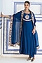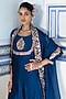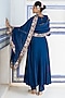 Featuring a blue anarkali in silk chanderi base with embroidery. It is paired with straight pants and an organza dupatta. Style it with kundan jewellery and heels for a festive occasion, wedding, engagement and sangeet ceremony