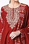 Featuring a burnt red kurta in silk chanderi and cotton base with hand embroidery. It is paired with gharara pants, potli, and a dupatta. Accentuate with statement jewellery and heels for a pooja ceremony or festive occasion.