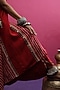 Featuring a red asymmetrical bandhani cape in silk base with mirror, stud and resham embroidery, including shell tassel details. It is paired with a dhoti. Accentuate it with polki jewellery and heels for festive occasions.