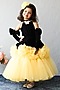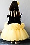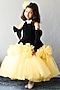 Featuring a black and yellow layered dress for girls in velvet and net base with cold-shoulder, voluminous rosette-style ruffles. Accessorize it with matching hair accessories and sandals for a stylish ensemble, ideal for any festive occasion or birthday party.