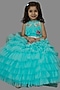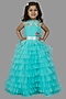 Blue Buttercrepe & Net Ruffled Gown For Girls