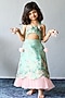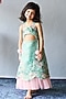 Mint Green Organza Floral Printed Halter Dress For Girls