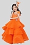 Orange Buttercrepe & Net Tiered Ruffled Gown For Girls