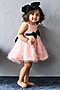 Featuring a pink and black dress for girls in soft textured fabric base with a black velvet bow detail. It is paired with a matching tulle hair accessory. Accessorize it with a cute sling bag and sandals for a stylish ensemble, ideal for any festive occasion or birthday party.