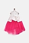 Featuring a pink and white peplum dress in scuba and soft net base with diamond embroidered patch. It has a cotton lining and cancan to add fluffiness.