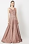 Featuring a biscuit brown sleeveless gown in silk base with rose gold and triangular embroidery. It has shantoon underlining.