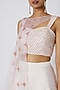 Featuring a blush pink lehenga in dupion base with sequins embroidery. It is paired with a blouse having attached organza jacket. Accentuate with statement earrings and heels for a complete look, ideal for a wedding or engagement ceremonies.