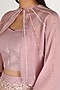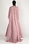 Featuring a blush pink lehenga in dupion and tabi silk base with aari embroidery. It is paired with a matching blouse and a cape.