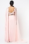 Featuring a blush pink draped saree in tabby silk base. It is paired with a matching satin organza embroidered blouse having net sleeves.