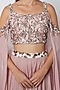 Featuring a blush pink to lilac ombre skirt in dupion and tabby silk base with aari embroidery. It is piared with a matching blouse. Accentuate it with statement jewellery and heels for a festive or sangeet look.