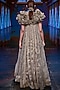 Featuring a chickoo colored gown in organza base with embroidery. It is paired with a matching ruffled jacket.