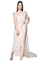 Featuring a cream pleated saree in dupion and organza base with a long pallu. It is paired with an off-shoulder blouse having sequins embroidery. Accentuate with statement jewellery and heels for festive occasions or wedding ceremony.