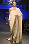 Featuring a cream to olive green ombre saree set in crepe and chiffon base. It has rose gold hand embroidery.