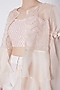 Featuring a cream jacket set in silk, organza and raw silk base with sequins embroidery. The set consists of a jacket, bustier, and pants.