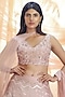 Featuring a dusted lilac lehenga in dupion silk and tabby silk base with chevron hand embroidery. It is paired with a matching sleeveless blouse and a neck drape.