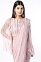 Featuring a dusty lilac saree in crepe, silk, and net base with sequins embroidery. It is paired with a matching blouse. Accentuate it with statement jewellery and heels for a wedding, sangeet or cocktail ceremonies.