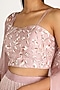 Featuring a dusty pink lehenga in dupion, shantoon and tabby silk base with embroidery. It is paired with a matching blouse.