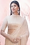 Featuring a golden saree in crepe and silk base with hand embroidery. It is paired with a matching blouse having half sleeves.