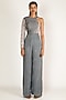 Featuring a grey jumpsuit in dupion, shantoon and habutai base with embroidery.