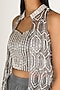 Featuring a grey lehenga in dupion, tabby silk and organza base with embroidery. It is paired with a matching blouse and jacket.