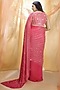 Featuring a hot pink saree in crepe, dupion silk and shantoon base with hand embroidery. It is paired with a matching sleeveless blouse.