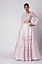 Featuring a lilac lehenga in dupion net base with sequins embroidery. It is paired with a matching one side draped blouse.