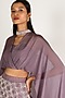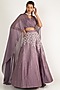 Featuring a mauve lehenga in dupion, shantoon and tabby silk base with embroidery. It is paired with a matching blouse.