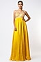 Featuring a mustard yellow anarkali in satin organza base. This contains only one piece.