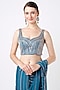 Neptune Blue Crepe Embroidered Pre-Stitched Saree Set
