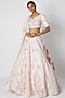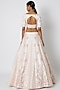 Featuring a nude lehenga in raw silk base with jaal and chevron sequins embroidery. It is paired with a blouse and a net dupatta. Accentuate this designer set with statement jewellery and heels for a complete look, ideal for a wedding or sangeet ceremony.