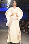 Featuring an off white lehenga set in dupion, satin organza and chiffon base with rose gold embroidery. It has bell sleeves.