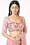 Featuring an onion pink saree in crepe and silk base with tassel embroidery. It is paired with a matching sequins embroidered blouse.