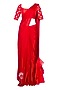 Featuring a red pleated saree in dupion, crepe, and organza base with ruffles and sequins embroidery. It is paired with a blouse. Style it with dangler earrings and heels for a wedding or sangeet ceremony.