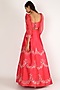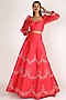 Featuring a red skirt in dupion, shantoon and organza base with embroidery. It is paired with a matching blouse.