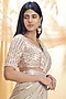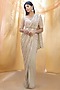 Featuring a sage green saree in crepe and silk base with sequins hand embroidery. It is paired with a matching blouse and a belt.