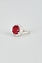 White Rhodium Finish Zircon & Red Stone Ring In Sterling Silver