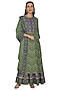Featuring a green kurta in silk mul base with bandhani print. It is paired with blue pants and chiffon dupatta.