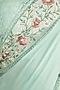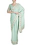 Featuring a mint green saree in cotton satin base. It is paired with matching blouse having emmbroidery.