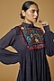 Featuring a purple maxi dress in viscose cotton base with embroidery.
