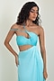Featuring an aqua blue one-shoulder gown in satin georgette base with cut-out and hand draping detail. Accentuate it with pearl jewellery, heels and an embellished clutch for a cocktail, reception or a red-carpet event.