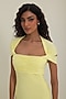 Featuring a butter yellow gown in stretch lycra base with hand draping detail and a square neckline. Accentuate it with pearl jewellery, heels and an embellished clutch for a cocktail, reception or a red-carpet event.