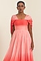 Featuring a coral gown in flat chiffon base with square neckline and ruched detail. Accentuate it with statement earrings and heels for a graceful look, perfect for festive gatherings or sangeet ceremony.